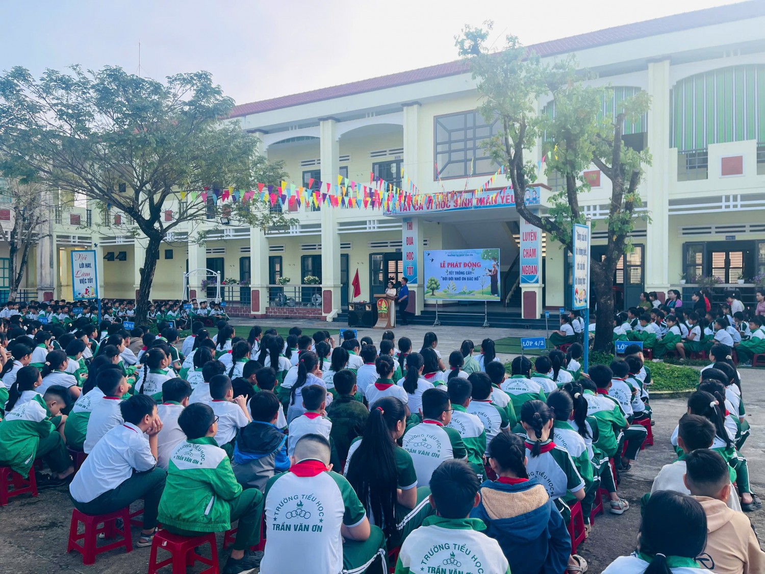 Sáng nay, trong không khí phấn khởi của những ngày đầu xuân mới, Trường Tiểu học Trần Văn Ơn đã long trọng tổ chức Lễ phát động “Tết trồng cây” xuân Bính Ngọ năm 2026. Hoạt động “Tết trồng cây” là nét đẹp truyền thống được khởi xướng từ lời kêu gọi của Chủ tịch Hồ Chí Minh, mang ý nghĩa sâu sắc trong việc bảo vệ môi trường, góp phần xây dựng cảnh quan xanh – sạch – đẹp và giáo dục ý thức trách nhiệm cho thế hệ trẻ đối với thiên nhiên và cộng đồng. Tham dự buổi lễ có Ban giám hiệu nhà trường, quý thầy cô giáo cùng toàn thể các em học sinh. Tại buổi lễ, đại diện Ban giám hiệu đã phát biểu phát động phong trào trồng cây, nhấn mạnh ý nghĩa thiết thực của việc trồng, chăm sóc và bảo vệ cây xanh trong khuôn viên trường học cũng như trong đời sống hằng ngày. Ngay sau lễ phát động, thầy cô giáo và các em học sinh đã cùng nhau tham gia trồng cây tại khuôn viên nhà trường. Những cây xanh được trồng hôm nay không chỉ góp phần tạo bóng mát, làm đẹp cảnh quan mà còn là thông điệp ý nghĩa về tinh thần trách nhiệm, ý thức bảo vệ môi trường và tình yêu thiên nhiên của thầy và trò nhà trường. Lễ phát động “Tết trồng cây” xuân Bính Ngọ năm 2026 đã diễn ra trong không khí vui tươi, phấn khởi, để lại nhiều ấn tượng tốt đẹp. Hoạt động này góp phần lan tỏa thông điệp “Mỗi người trồng một cây – Vì một Việt Nam xanh”, đồng thời thể hiện quyết tâm của thầy và trò Trường Tiểu học Trần Văn Ơn trong việc xây dựng môi trường học tập thân thiện, xanh – sạch – đẹp và bền vững.